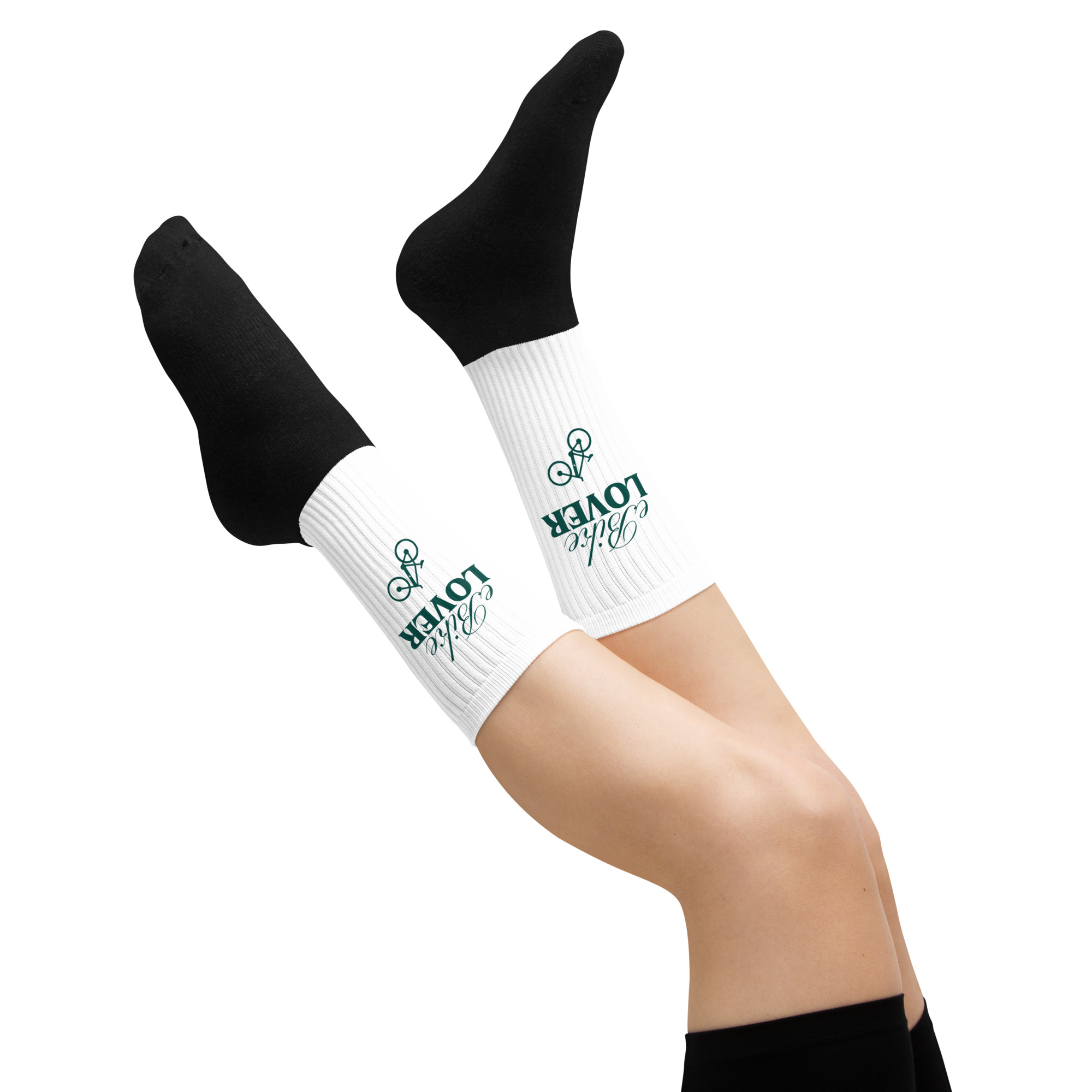 Diese Socken sind dank ihres gepolsterten Bodens besonders bequem. Der Fuß ist schwarz. Der Druck ist entlang des Beins mit klaren, kräftigen Farben, die nicht verblassen.
